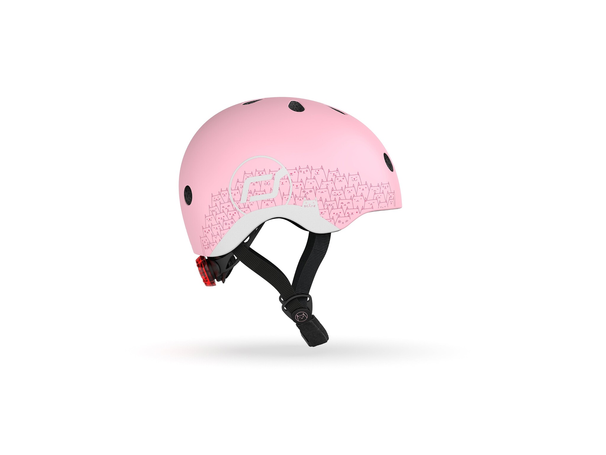 Met deze verstelbare helm kan jouw kleintje veilig met de (loop)fiets of step op pad. Voorzien van ventilatiegaten EN een LED-lampje aan de achterkant.