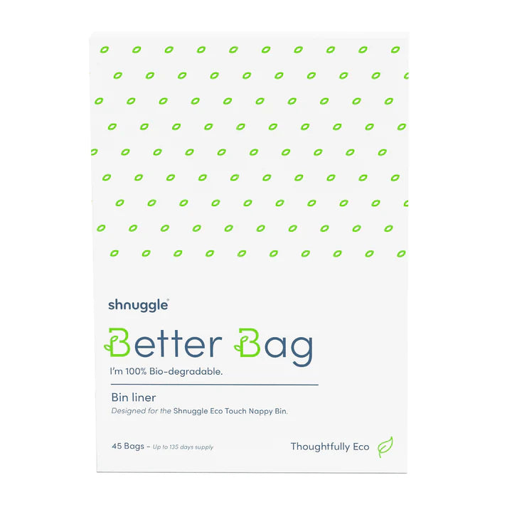 - Elke verpakking bevat 45 eco-afvalzakken en is voldoende voor 135 dagen gebruik in de Shnuggle Eco Touch luieremmer.