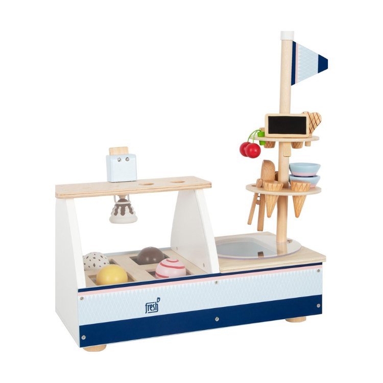 Met dit leuke ijskraampje van Small Foot maakt jouw kleintje de allerlekkerste (fantasie) ijsjes!