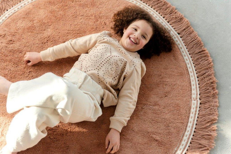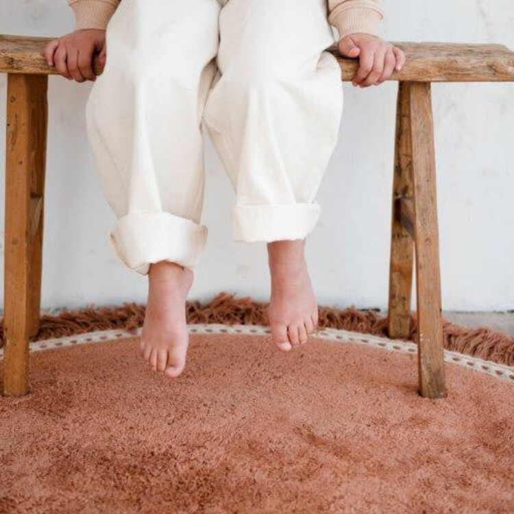 Het vloerkleed Anna Old Pink geeft de meisjes- of babykamer direct een warme en zachte uitstraling. Door de effen donkerroze kleur straalt het vloerkleed rust uit en past het in elk interieur. Dit ronde kleed is heerlijk zacht aan je voeten. Tapis Petit werkt alleen met natuurlijke materialen, en dit vloerkleed is dan ook handgemaakt van getuft katoen. Het vloerkleed is ook wasbaar in de wasmachine.