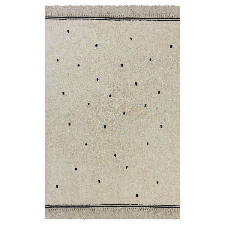 De Emily dots cream is door haar neutrale crème kleur met zwarte stip, een favoriet in ieder interieur. Het vloerkleed past niet alleen goed in een meisjes- of jongenskamer, maar ook in de slaapkamer van de ouders, werkkamer of in een knusse leeshoek. De Emily dots cream is een rechthoekig, laagpolig kleed maar is ook verkrijgbaar in een ronde versie, de Anna dots Cream . Tapis Petit werkt alleen met natuurlijke materialen. Het kleed is handgemaakt van getuft katoen en kan ook gewassen worden in de wasmachine.