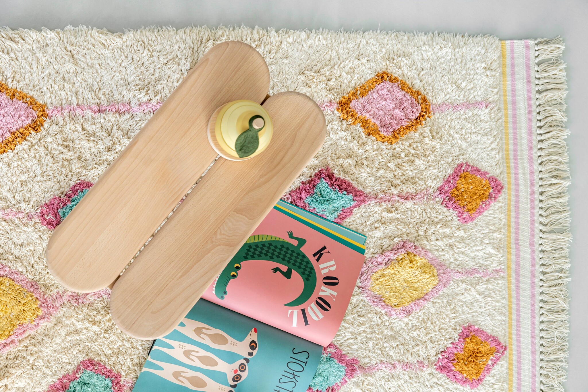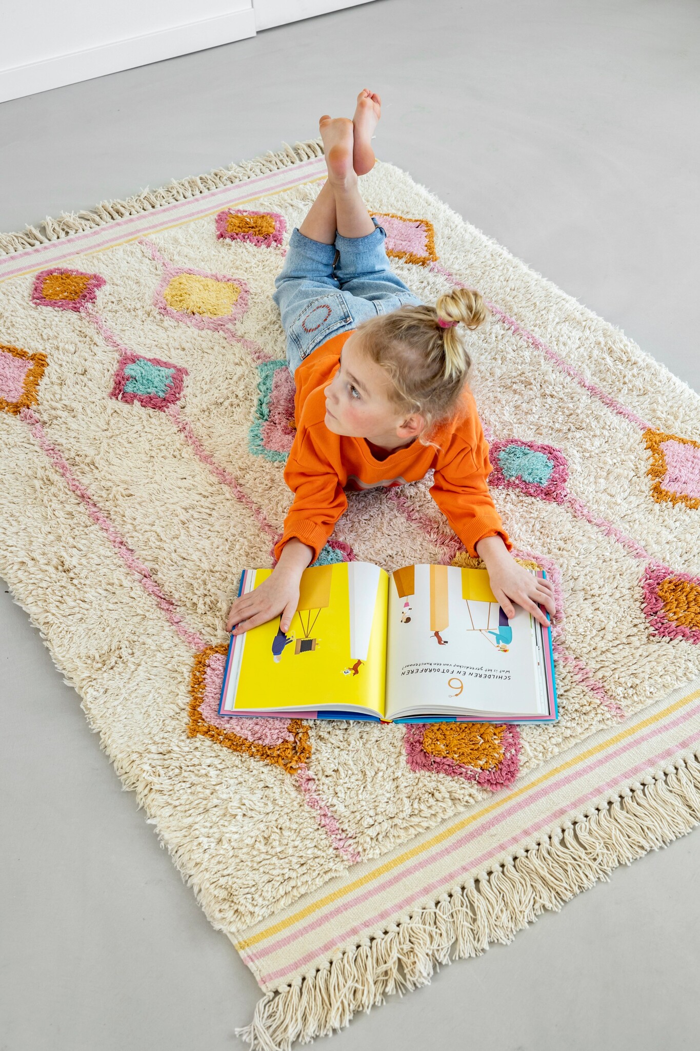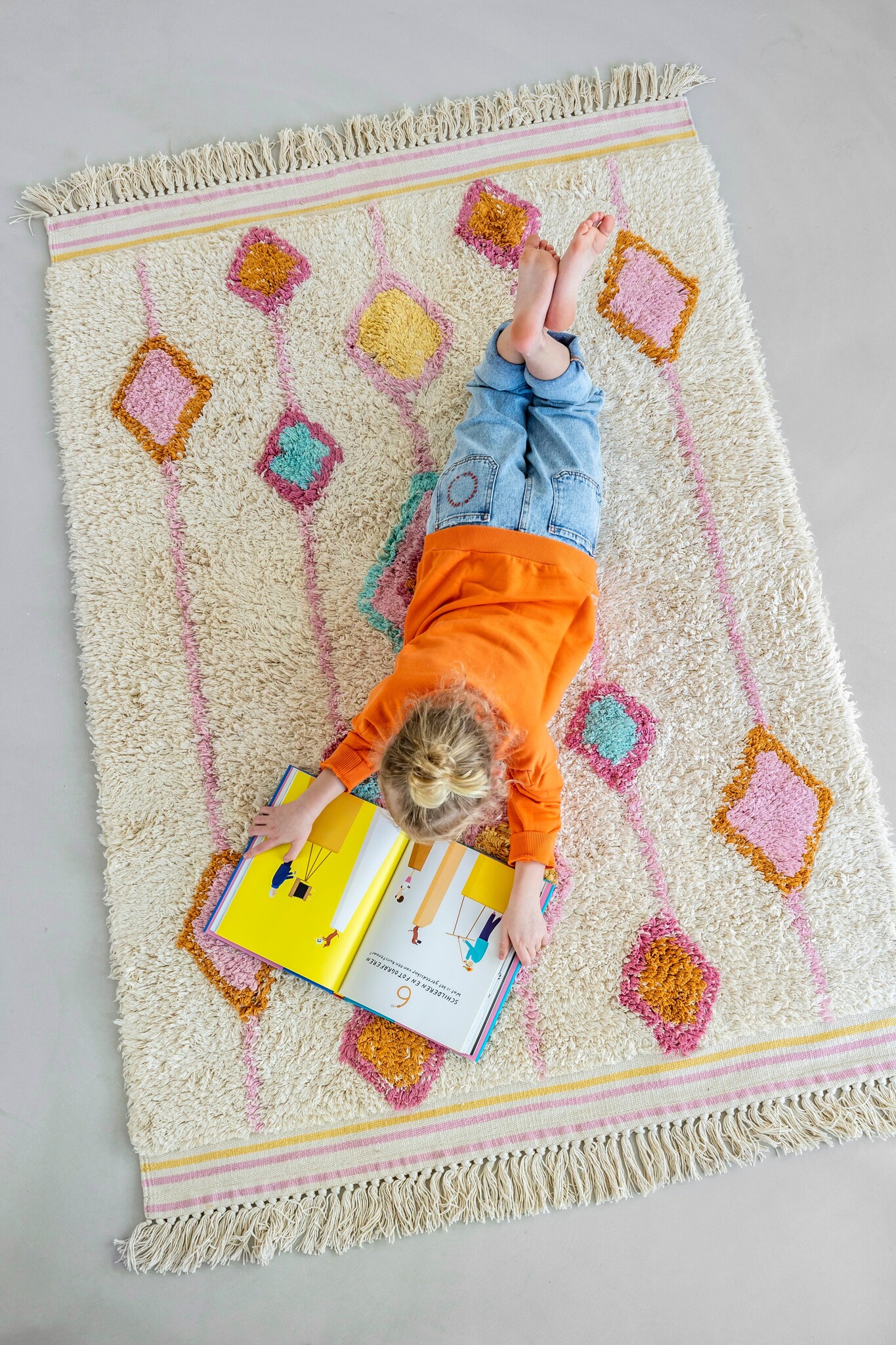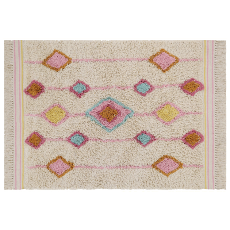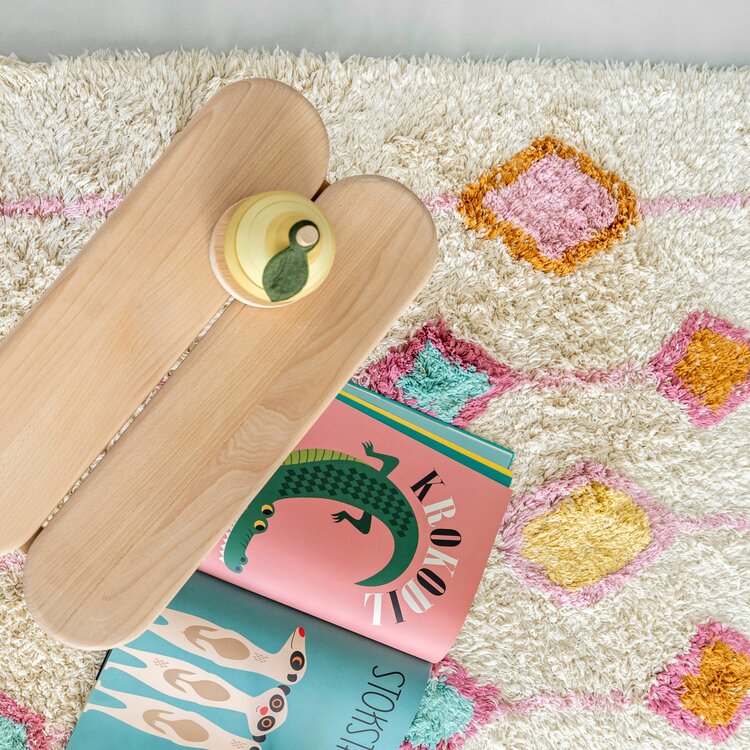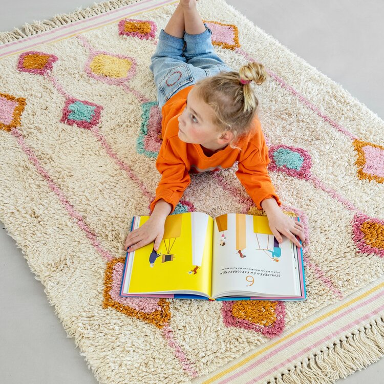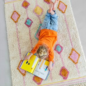 Het vloerkleed Lea is een echte eyecatcher voor de kinderkamer, meisjeskamer of zelfs de woonkamer. Dit rechthoekige vloerkleed heeft een vrolijk ruitendesign in verschillende trendy kleuren. Door de kleurencombinatie van roze, blauw, rood, geel en oranje krijgt de slaapkamer direct een warme en gezellige sfeer. Het vloerkleed is hoogpolig en verkrijgbaar in twee maten: Lea medium en Lea large. De vloerkleden van Tapis Petit zijn met de hand gemaakt van natuurlijke en duurzame materialen.