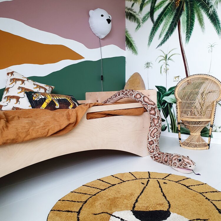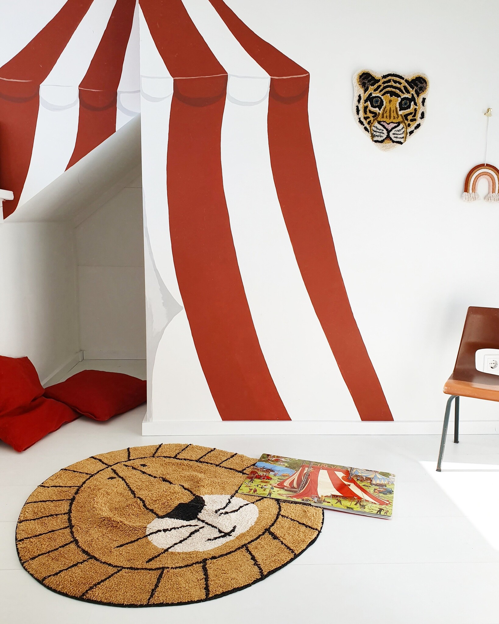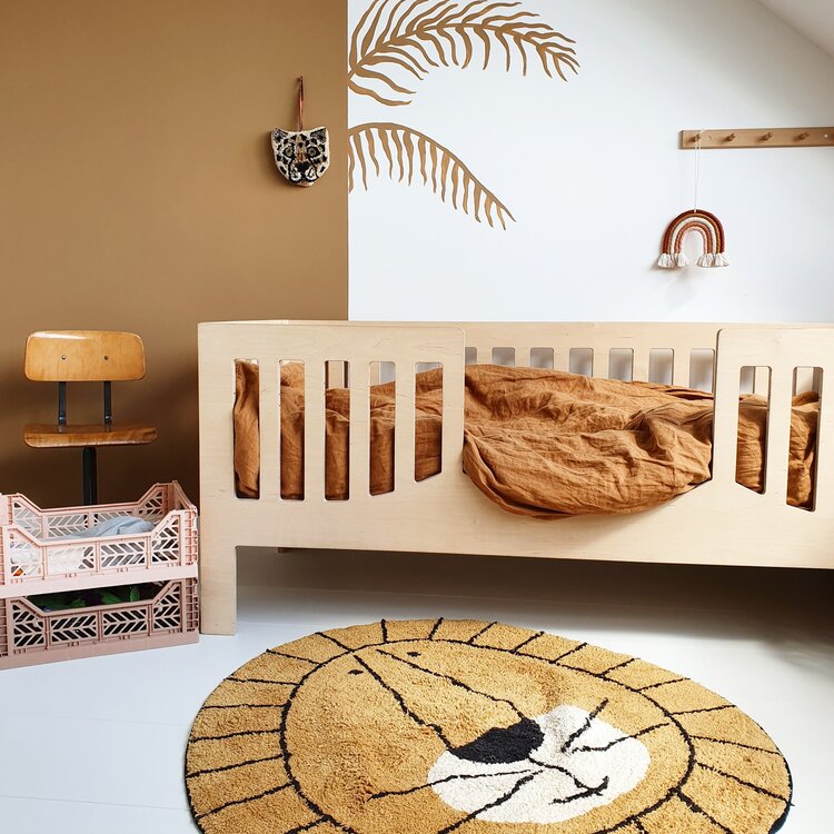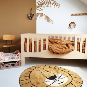 Het vloerkleed Lion is de favoriet voor de jungle kinderkamer. Door de okergele kleur geeft het vloerkleed direct sfeer en warmte in de kinderkamer. Dit ronde leeuwenvloerkleed is gemaakt van getuft katoen en is laagpolig. Hierdoor voelt het kleed heerlijk zacht aan je voeten en kunnen meisjes en jongens niet wachten om erop te spelen. Tapis Petit werkt met natuurlijke en duurzame materialen. Alle vloerkleden van Tapis Petit zijn handgemaakt en kunnen zelfs in de wasmachine gewassen worden.