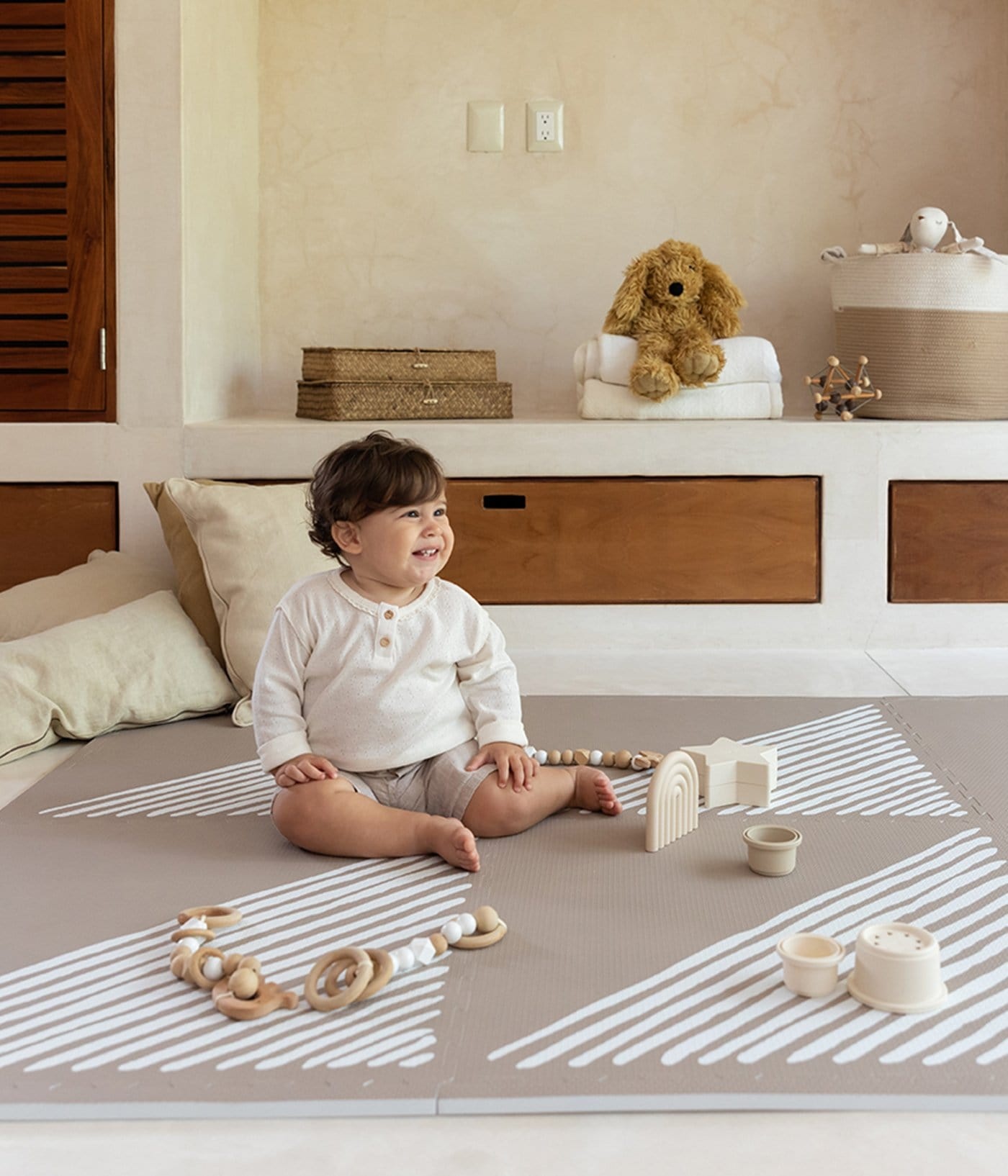 After baby, our playmats are the perfect addition to your home. Cushioned, wipe-clean and effortless style. Our Prettier Puzzle Playmats add glamour to your play space. Change the tiles around to create different looks.