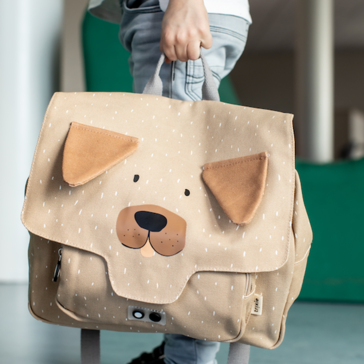 Met dit schattige boekentasje is je kindje helemaal klaar voor de eerste schooldag! De boekentas heeft verstelbare en gewatteerde schouderriemen en aan de bovenkant een handvat om gemakkelijk te kunnen ophangen. De gesp op de borst zorgt ervoor dat de schouderriemen niet van de schouders glijden. Er is ook een klein zakje aan de voorkant voorzien en de ritsen van het grote compartiment en het voorste zakje zijn voorzien van een groter trekkertje zodat de kindjes ze zelf eenvoudig kunnen openen en sluiten. Om te vermijden dat je kindje z'n boekentasje kwijtspeelt, hebben we langs de binnenkant een naam label voorzien.