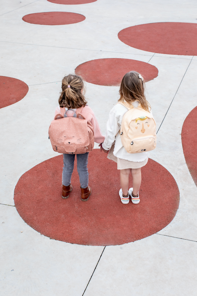 Met dit schattige boekentasje is je kindje helemaal klaar voor de eerste schooldag! De boekentas heeft verstelbare en gewatteerde schouderriemen en aan de bovenkant een handvat om gemakkelijk te kunnen ophangen. De gesp op de borst zorgt ervoor dat de schouderriemen niet van de schouders glijden. Er is ook een klein zakje aan de voorkant voorzien en de ritsen van het grote compartiment en het voorste zakje zijn voorzien van een groter trekkertje zodat de kindjes ze zelf eenvoudig kunnen openen en sluiten. Om te vermijden dat je kindje z'n boekentasje kwijtspeelt, hebben we langs de binnenkant een naam label voorzien.