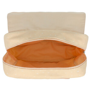 Met dit schattige boekentasje is je kindje helemaal klaar voor de eerste schooldag! De boekentas heeft verstelbare en gewatteerde schouderriemen en aan de bovenkant een handvat om gemakkelijk te kunnen ophangen. De gesp op de borst zorgt ervoor dat de schouderriemen niet van de schouders glijden. Er is ook een klein zakje aan de voorkant voorzien en de ritsen van het grote compartiment en het voorste zakje zijn voorzien van een groter trekkertje zodat de kindjes ze zelf eenvoudig kunnen openen en sluiten. Om te vermijden dat je kindje z'n boekentasje kwijtspeelt, hebben we langs de binnenkant een naam label voorzien.