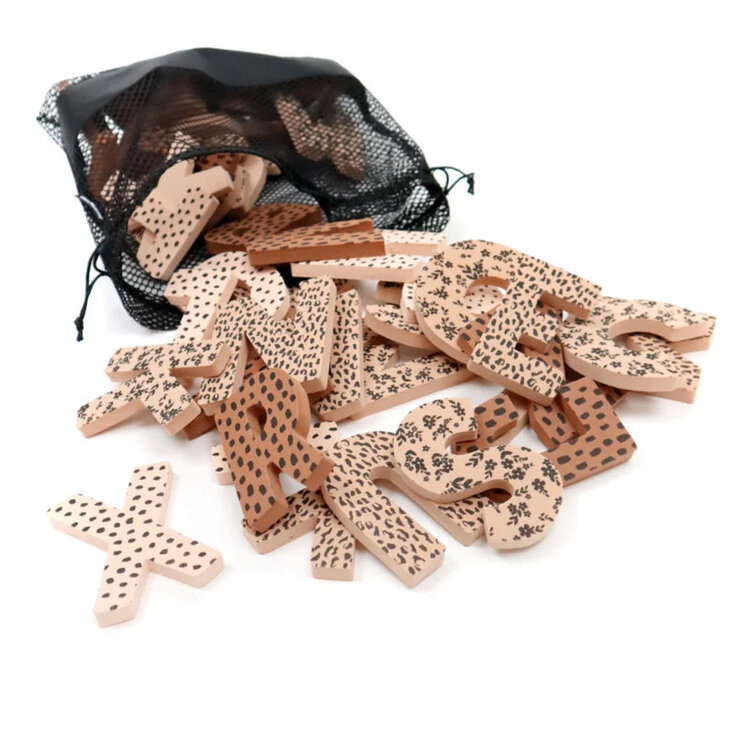Als de letters en de wand nat zijn, dan zullen de letters blijven plakken. Maar ze kunnen ook drijven! Leer je kleintje het alfabet of zelfs de eerst woordjes. Gegarandeerd speelplezier! Je krijgt 26 letters (A-Z) in een zwart bewaarzakje. Vanaf 18+ maanden.