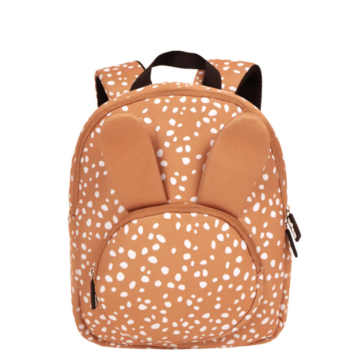 Deze stoere en toch schattige rugzak is stevig, van goede kwaliteit en waterafstotend. Perfect voor school. Door de dubbele ritssluiting is de tas eenvoudig te openen. De oren van het konijn zitten los op het voorvakje gestikt, voor een speels effect.