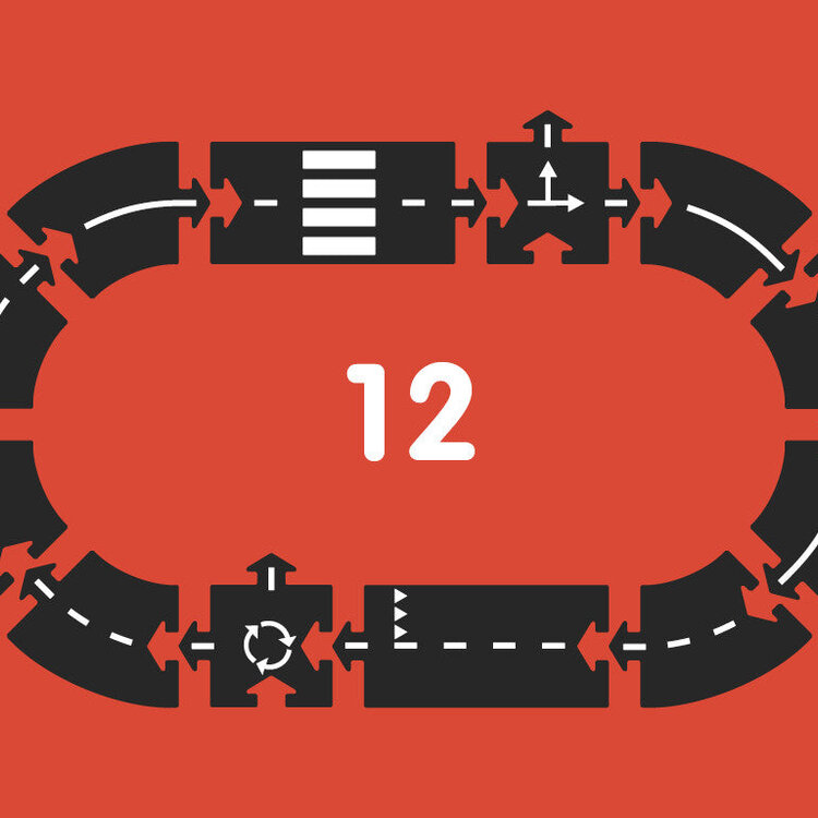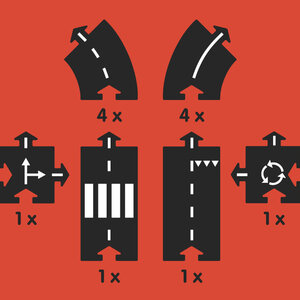 - 8 bochten, 2 rechte baandelen, 1 kruising en 1 rotonde