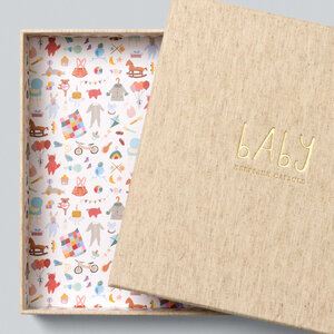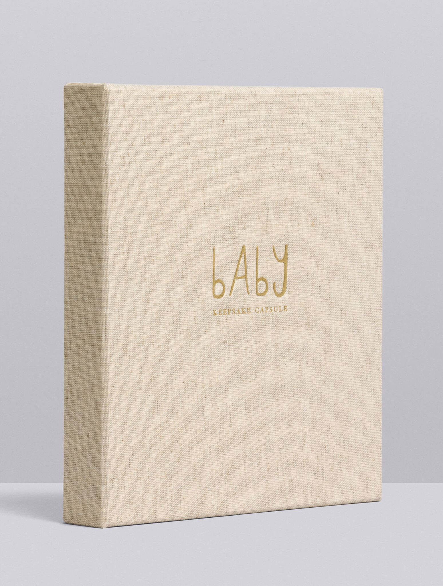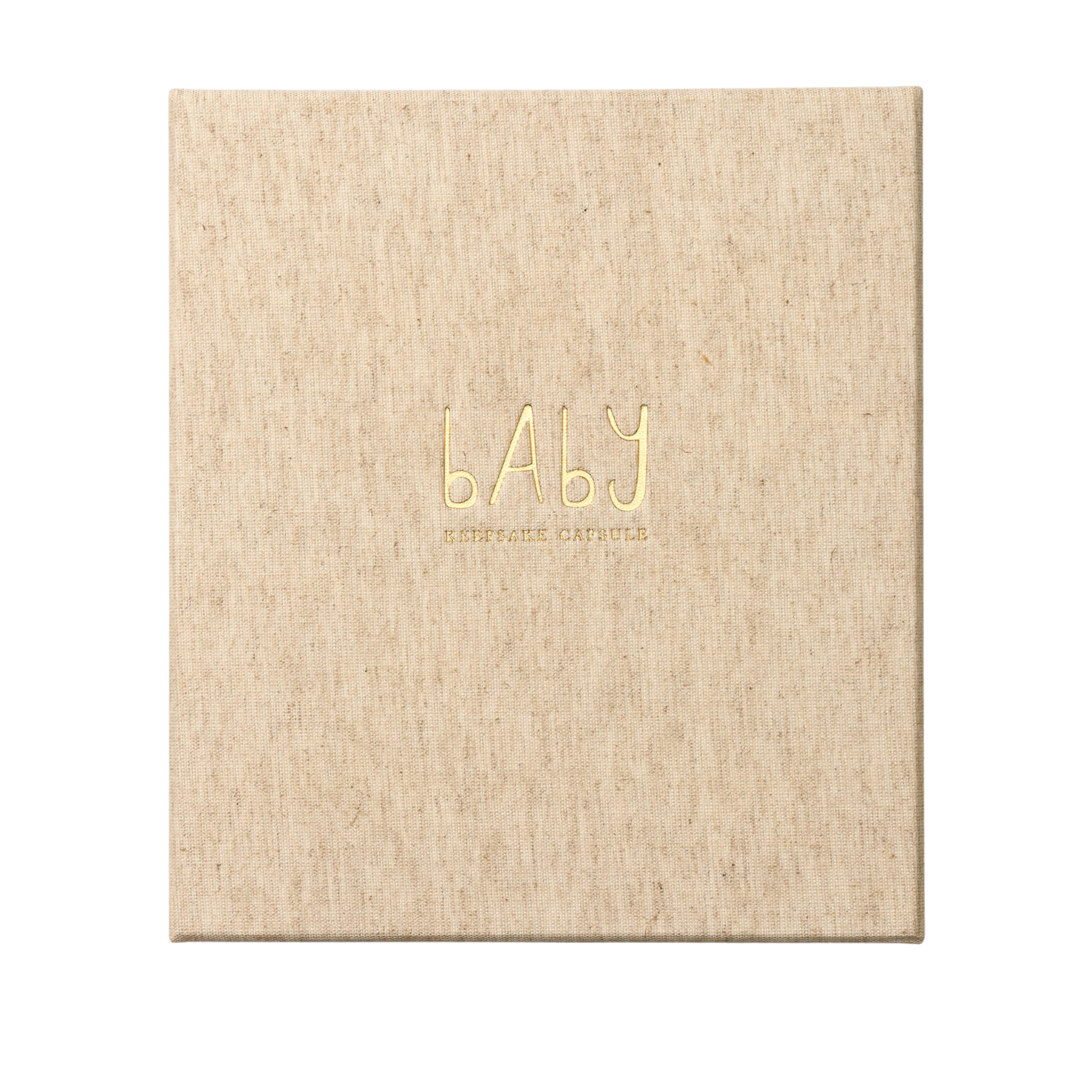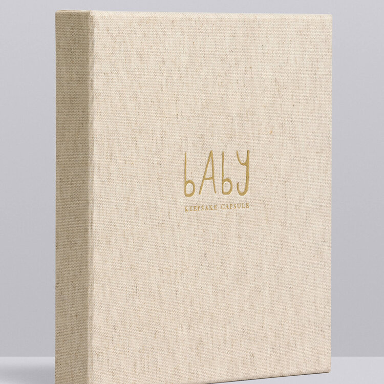 - Keepsake Capsule Box met linnen bekleed keepsake box met gouden reliëftitel.