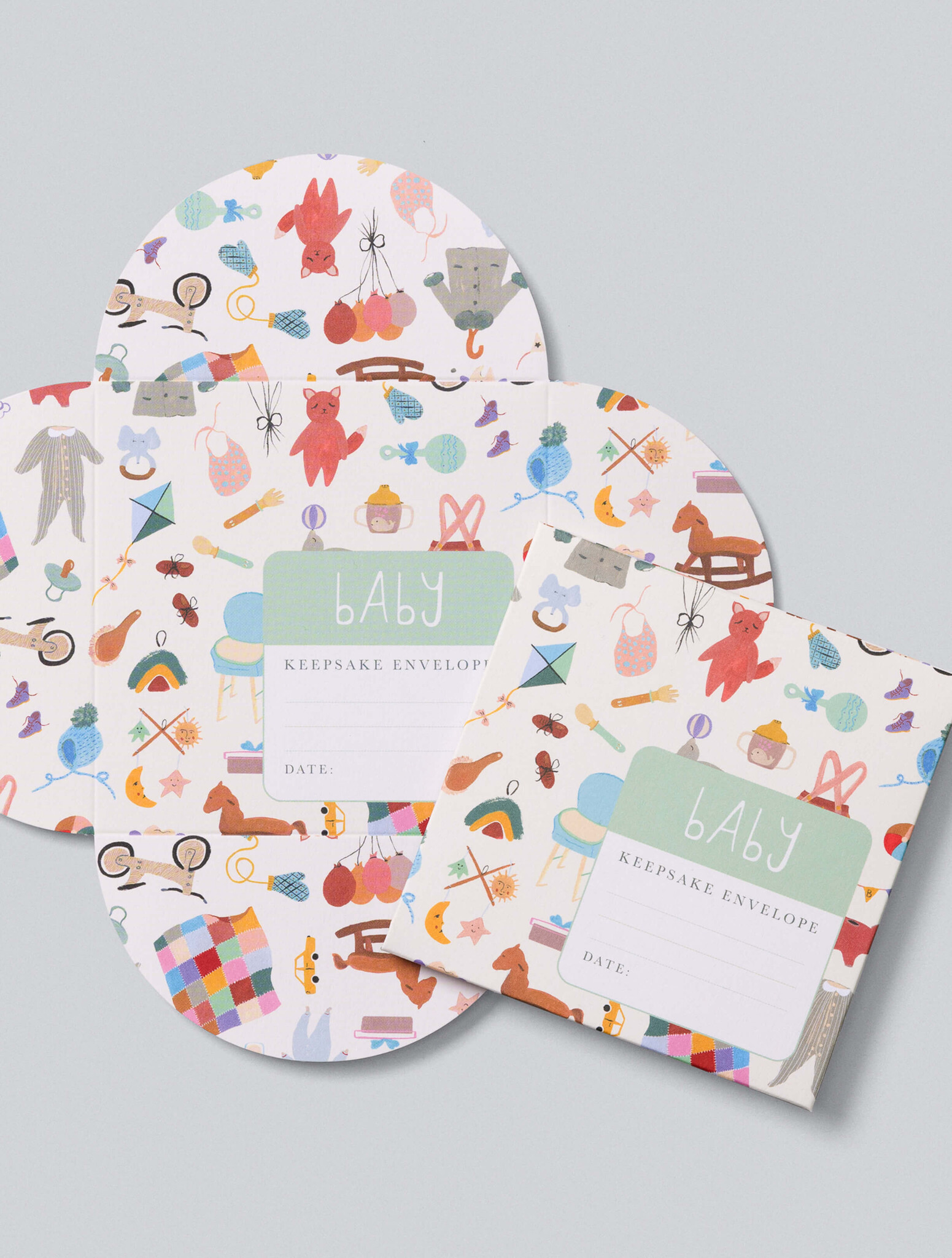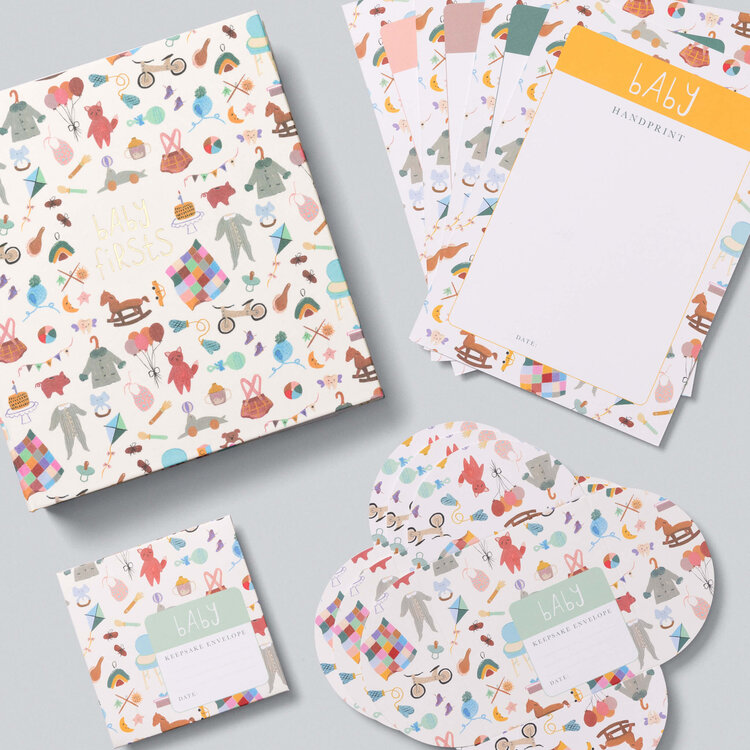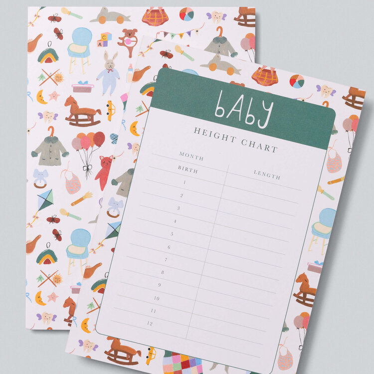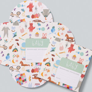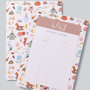 - Kaarten 4 Keepsake Cards om gewicht, lengte en hand- en voetafdrukken op te schrijven.
