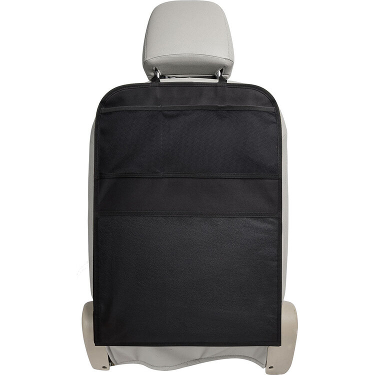 Met de A3 Baby & Kids Kickmat Deluxe voorkom je beschadigingen of vuil op de rugleuning van de voorstoel. Kinderen kunnen ongemerkt met hun schoentjes tegen de rugleuning aankomen. Deze stoelbeschermer is voorzien van twee handige opbergvakken aan de bovenzijde en onder de opbergvakken voorzien van PU leder in het zwart. Gemaakt van stevig materiaal en makkelijk schoon te maken.