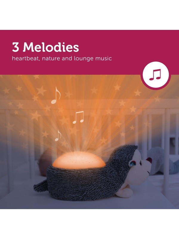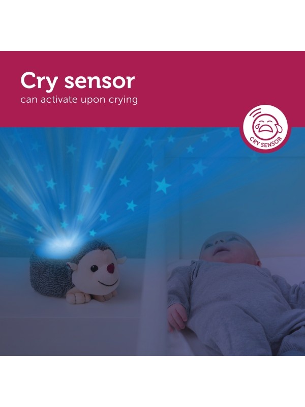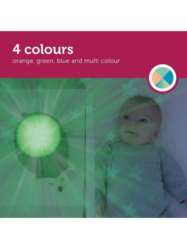 Verander de slaapkamer in een magische sterrenhemel en speel tegelijkertijd rustgevende muziek. De sterrenhemel kan geprojecteerd worden in 4 verschillende kleuren: oranje, blauw, groen en multi-color. Kies uit 3 verschillende melodieën om bij in slaap te vallen : hartslag, natuur of loungemuziek. De projectie schakelt automatisch uit na 30 minuten, het geluid na 15 minuten. Harry schakelt automatisch aan wanneer je kindje begint te huilen. Werkt op 3x AA batterijen (excl.).